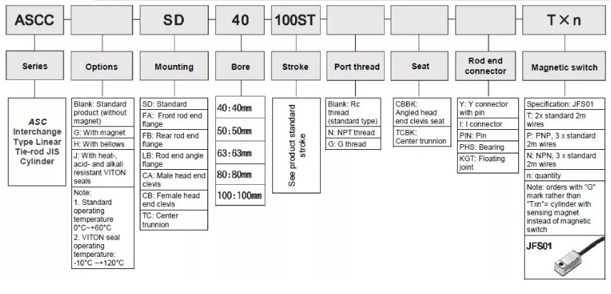 Xi lanh thanh đôi, xử lý kép JIS ASCC